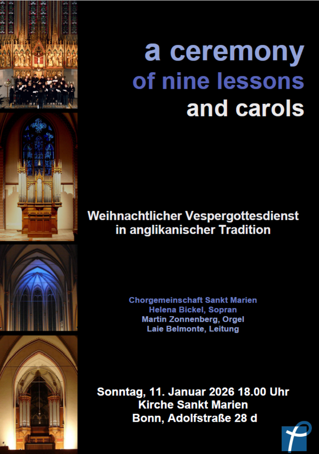 Lesungen, Chormusik und viele gemeinsam gesungene Choräle verbinden sich zu einer meditativen Feier voller Klang, Licht und Besinnung. Die Chorgemeinschaft Sankt Marien gestaltet den Abend gemeinsam mit Solisten und Orgel. Sonntag, 11. Januar 2026, 18.00 Uhr, Kirche Sankt Marien Bonn – ein stimmungsvoller Ausklang der Weihnachtszeit.