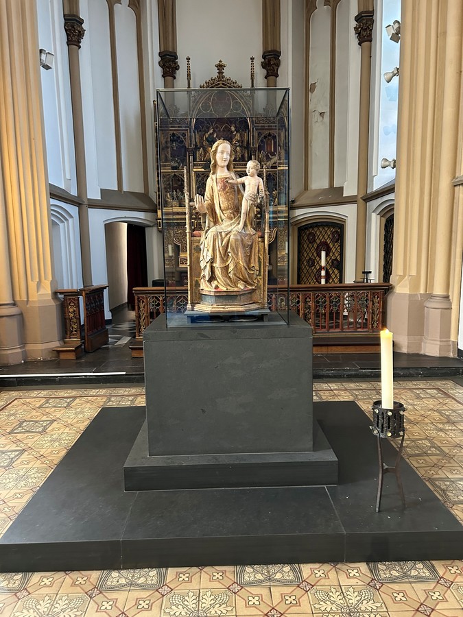 Fred Brömsel brachte das Diebesgut schließlich zurück an seinen rechtmäßigen Ort in die Stiftskirche. Dort steht der mehr als 700 Euro wertvolle Leuchter an der Dietkirchenmadonna aus dem 14. Jahrhundert, einer der ältesten Figuren des Stifts. „Wir sind Herrn Brömsel sehr dankbar für sein aufmerksames, kluges und engagiertes Handeln. Das verdient große Anerkennung und Dank. Die Pfarrei St. Petrus und die Besucher der Stiftskirche freuen sich, dass der wertvolle Leuchter wieder so schnell an seinen angestammten Platz zurückgekommen ist“, so Stadtdechant und Innenstadtpfarrer Msgr. Dr. Markus Hofmann beim gemeinsamen Fototermin.