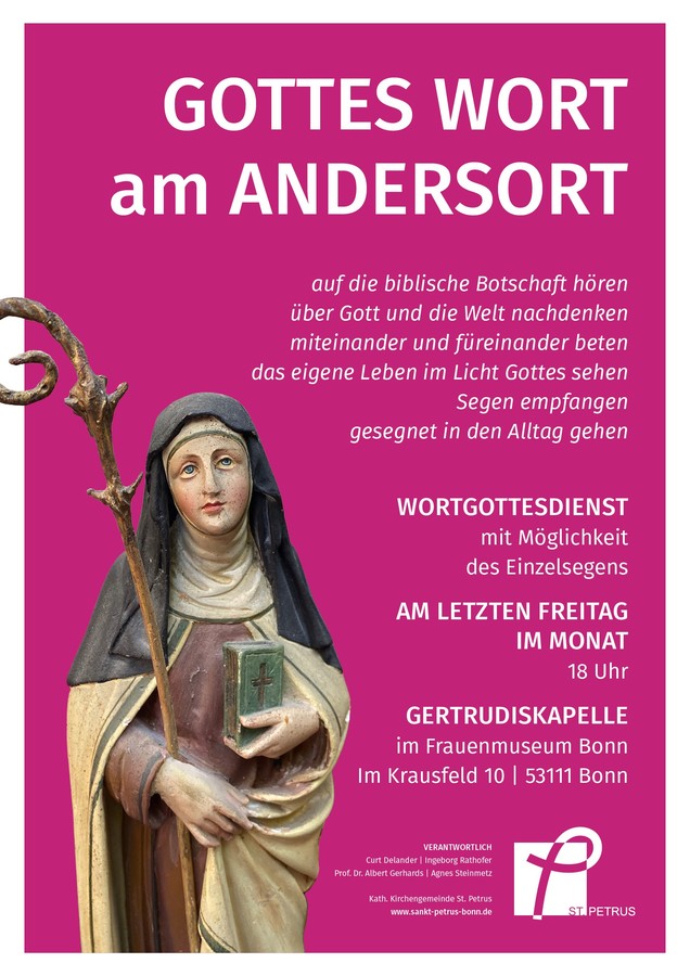 Das Frauenmuseum spielt dabei eine wichtige Rolle, auch für die derzeitige Situation der Frauen in der Kirche und ich möchte die versöhnende Botschaft unseres Papstes Franziskus und unseres Kardinals in Köln den Menschen näher bringen. Es sieht ja im Moment - ,für mich zumindest - so gut aus, wie es nie vorher ausgesehen hat, und ich möchte mit aller Kraft versuchen, in und durch die Gertrudiskapelle als Ort der Begegnung und des Austauschs sowie der liturgischen Feier den Menschen unsere katholische Kirche näherzubringen."