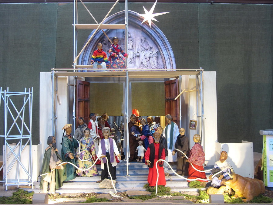 Ab dem 1. Advent finden Sie wöchentlich wechselnde Szenen mit aktuellem Bezug in der tagsüber - täglich außer montags - geöffneten Kirche Sankt Marien vorne im linken Seitenschiff